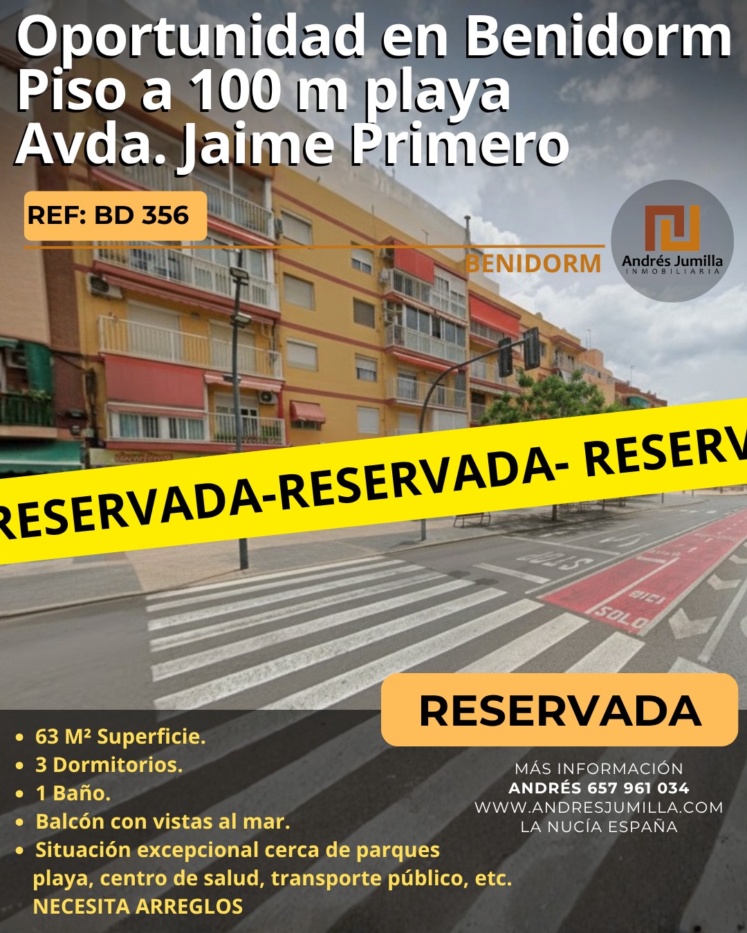 Se vende piso luminoso en tercera planta de un edificio residencial sin ascensor, con 63 m² de superficie ideal para vivir o invertir. La vivienda se distribuye en un vestíbulo, amplio salón-comedor, 3 dormitorios, cocina independiente con galería, un aseo y un balcón/terraza con vistas al mar, perfecto para disfrutar del sol y la brisa mediterránea.